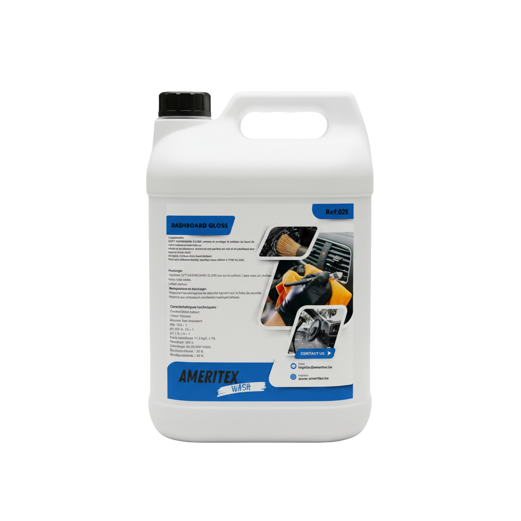 DASHBOARD GLOSS nettoie et protège le tableau de bord de votre voiture et convient au vinyle et au plastique. Il redonne aux parties en cuir et en plastique leur aspect et leur éclat d'origine. Parfum frais. Fini semi-brillant. Pour une brillance élevée, veuillez vous référer à TYRE GLOSS.